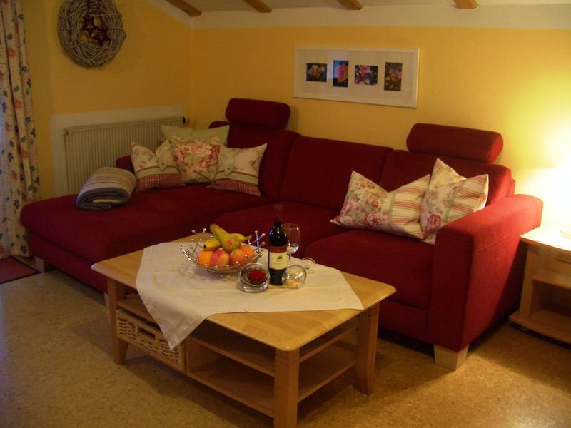 Genießen Sie erholsame Urlaubstage in unserer schönen, gepflegten Ferienwohnung. Auf Sie wartet ein heller freundlicher Wohnraum mit gut ausgestatteter Einbauküche (Spülmaschine, Mikrowelle, Backofen usw.) passender Sitzgelegenheit und eine bequeme Couch mit Tisch. Eine Stereoanlage, SAT-TV, Videorekorder und Wlan Empfang gehören zur festen Einrichtung.